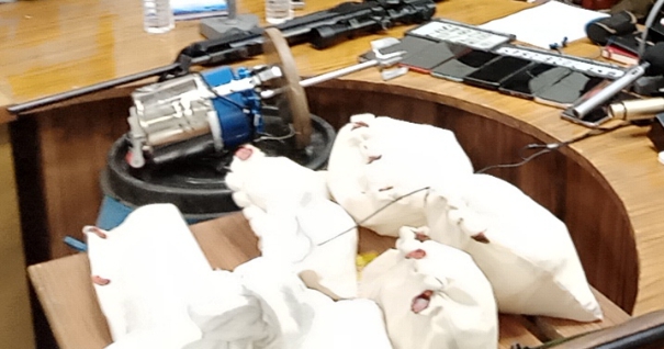दबिश के दौरान पुलिस ने 01 किलोग्राम स्मैक, 02 किलोग्राम एमडी ड्रग, 02 किलोग्राम केटामाइन केमिकल, 25 प्रतिबंधित नशीले इंजेक्शन, 05 किलोग्राम सोडियम कार्बोनेट, 07 किलोग्राम अमोनियम नाइट्रेट, 07 मोबाइल फोन, 02 हाईटेक सिक्योरिटी नंबर प्लेट, एक राइफल, एक एयर गन, दो ड्रम एवं नशीले पदार्थ बनाने में उपयोग होने वाली एक मशीन जब्त की है।