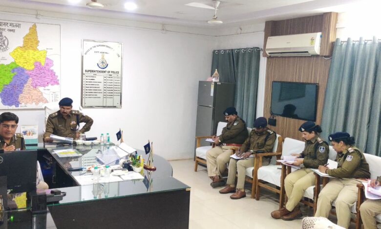 आरिफ खान, आगर मालवा। पुलिस अधीक्षक कार्यालय, आगर मालवा में पुलिस उपमहानिरीक्षक नवनीत भसीन की अध्यक्षता में अपराध समीक्षा बैठक आयोजित हुई। इस दौरान पुलिस अधीक्षक विनोद कुमार सिंह ने उनका स्वागत किया।